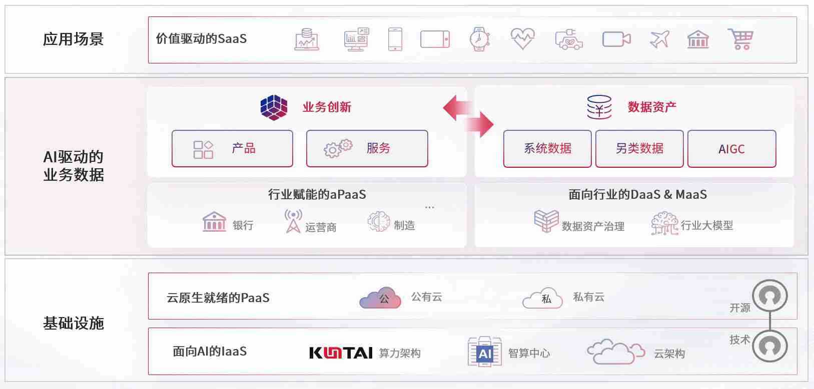 数字时代,,,,围绕企业数字化转型的关键要素,,,菠菜论坛数码开创性的提出数云融合战略和技术体系框架,,着力在云原生、、、数字原生、、、AI原生和信创产业上架构产品和服务能力,,,,为处在不同数字化转型阶段的快消零售、、汽车、、金融、、医疗、、、政企、、教育、、运营商等行业客户提供泛在的敏捷IT能力和融合的数据驱动能力,,,,构建跨界融合创新的数字业务场景和新业务模式,,,,助力企业级客户建立面向未来的核心能力和竞争优势,,,,全面推动社会的数字化、、、智能化转型升级。。。。